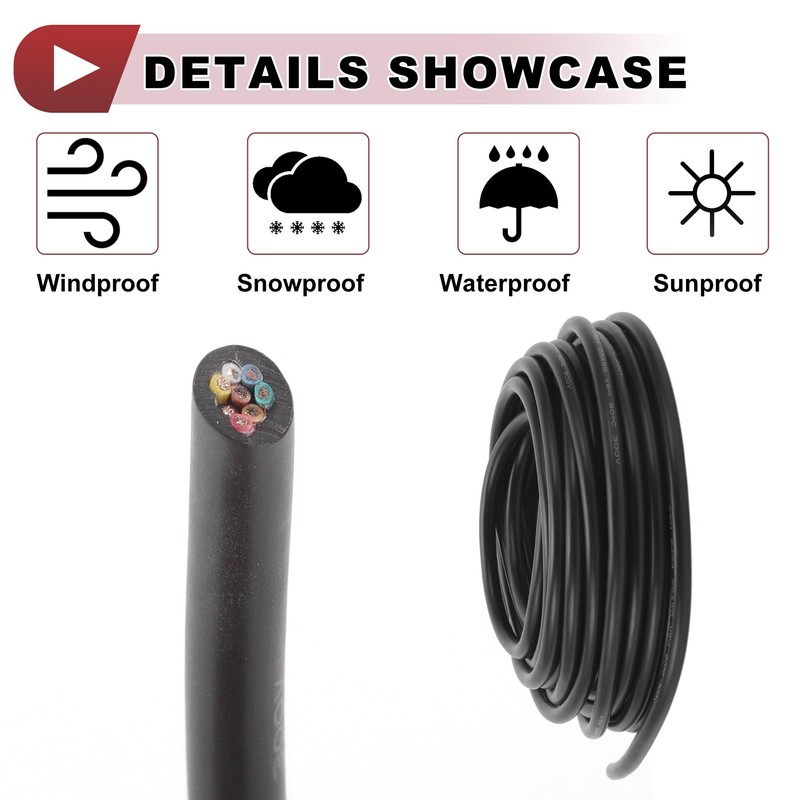 HEROFFIX Electrical Ground Wire Automotive Power Wire 30FT Black TC 1 Pcs 22AWG 8 Conductor Fully Insulated& Soft Touch Jacket Universal