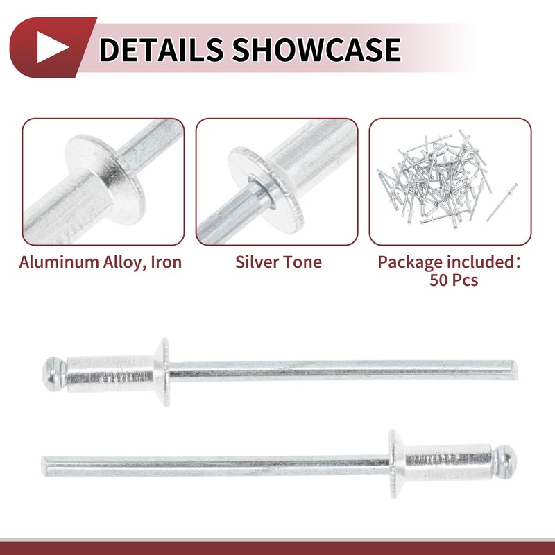 • Package List: 50(+/-2%) Pcs Open End Large Flange Blind Rivets.