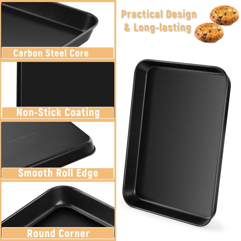 - NON STICK COATING: Coated with non-toxic nonstick coating make it easy to release foods from baking pan, Round corner design perfectly prevent foods from sticking, Easy to clean and hand wash recommended for better maintenance