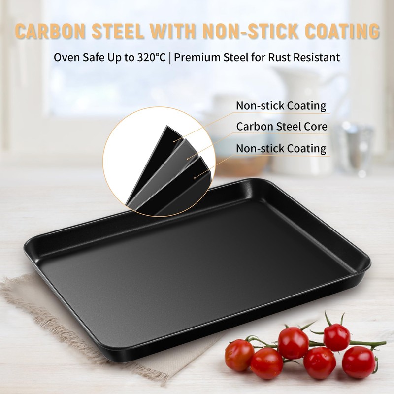 - HEALTHY MATERIAL: Herogo oven tray made of carbon steel with non-stick coating, Better rustproof and corrosion protection than aluminum pan, No worry about harmful substances release into foods, More healthy and safety for daily baking use