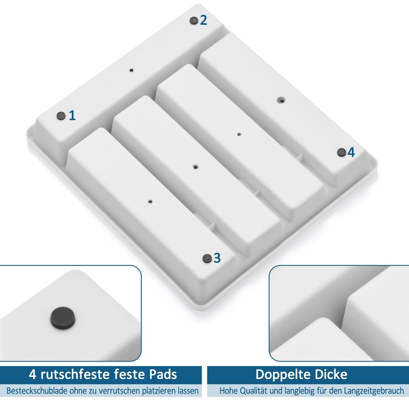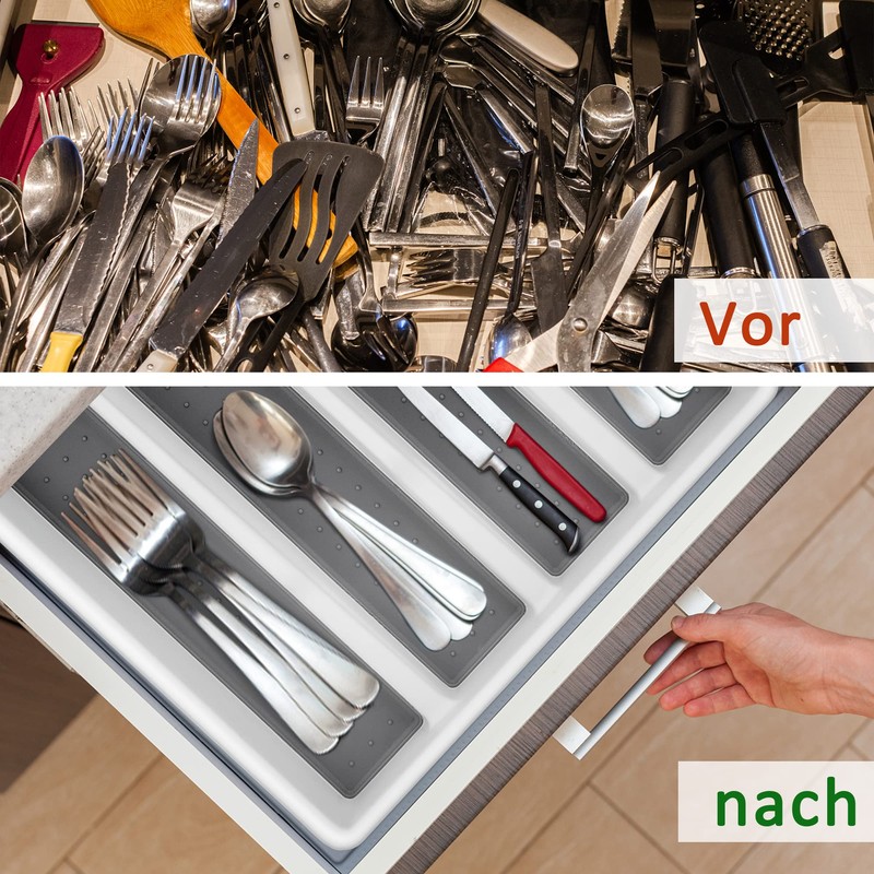 - Non-slip drawer insert: all sections of the cutlery tray are lined with soft and non-slip rubber to protect your cutlery without slipping when opening the drawer, small silicone pads on the bottom to prevent slipping in the drawer and stay stable in place