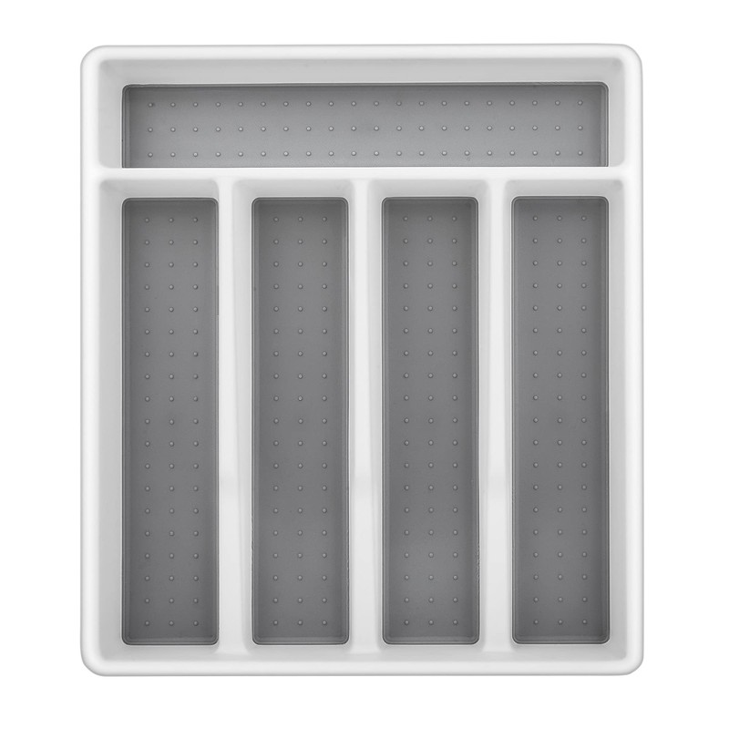 Herogo Cutlery Tray for Drawers, Plastic Cutlery Tray with 5 Compartments, 32.5 x 29 x 4.5 cm, Robust Drawer Insert for Kitchen, Office, White & Grey