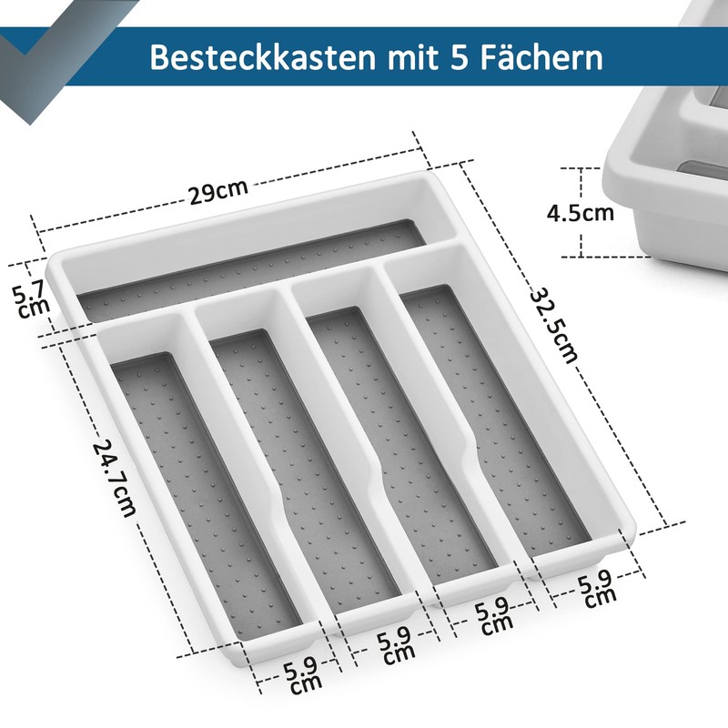 - Keep your kitchen organised: Herogo cutlery tray with 5 compartments offers plenty of space for your cutlery and it is the perfect solution to keep cutlery tidy, 32.5 x 29 x 4.5 cm. Dimensions fit easily in most drawers and keep your kitchen clean and tidy (please measure your drawer before purchasing)