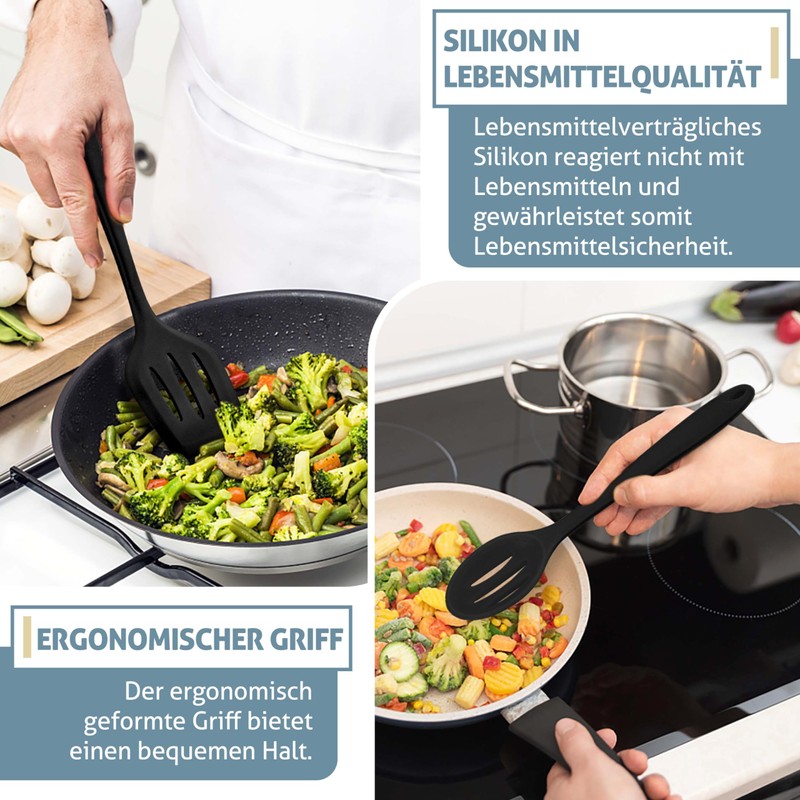 Herogo Küchenutensilien Set, 10 Stück Silikon Kochutensilien Set, kochgeschirr kochbesteck pfannenwender küchenset für Kochen Backen, Kratzfest & Hitzebeständig, Ungiftig & Spülmaschinenfest (Schwarz)