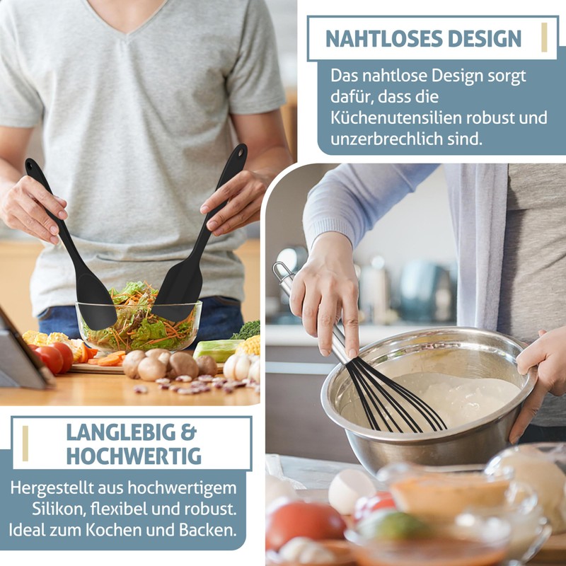 - 【HITZEBESTÄNDIG & KRATZFEST】 Silikon- Kochgeschirr können hohen Temperaturen bis zu 572°F(300°C) standhalten und schmelzen nicht, schützen Ihre Hände vor Verbrennungen in heißen Umgebungen, glatte Kante wird Ihr Antihaft-Kochgeschirr nicht zerkratzen, verlängert die Lebensdauer Ihrer Küchenutensilien