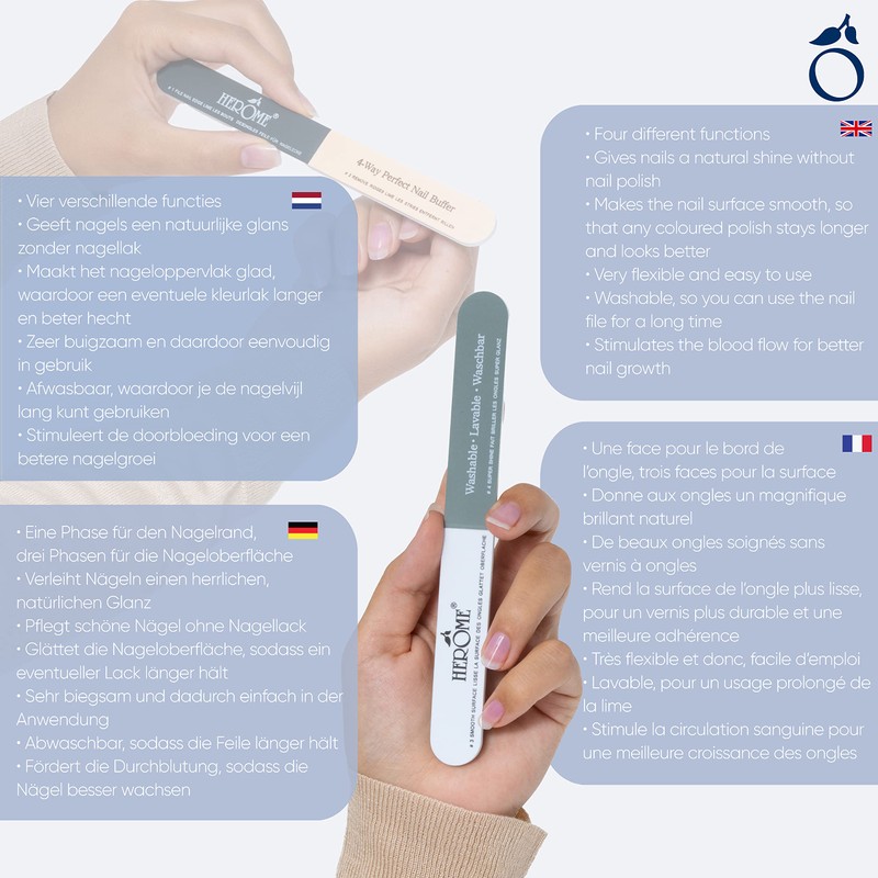 Herome 4-Way Perfect Polishing File (4-Way Buffer) - Nail File Nail Polisher for Natural Nails - High-Gloss Nails without Nail Polish