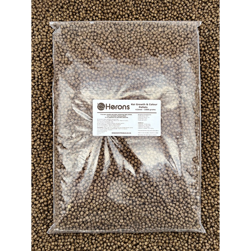 HERONS HERONS - Koi Growth & Colour Pellets, 4.5mm - 1KG - Premium Pond Fish Food, For Koi Carp, Shubunkin and Goldfish, Growth and Colour Enhancing, High Protein, Multi Ingredient