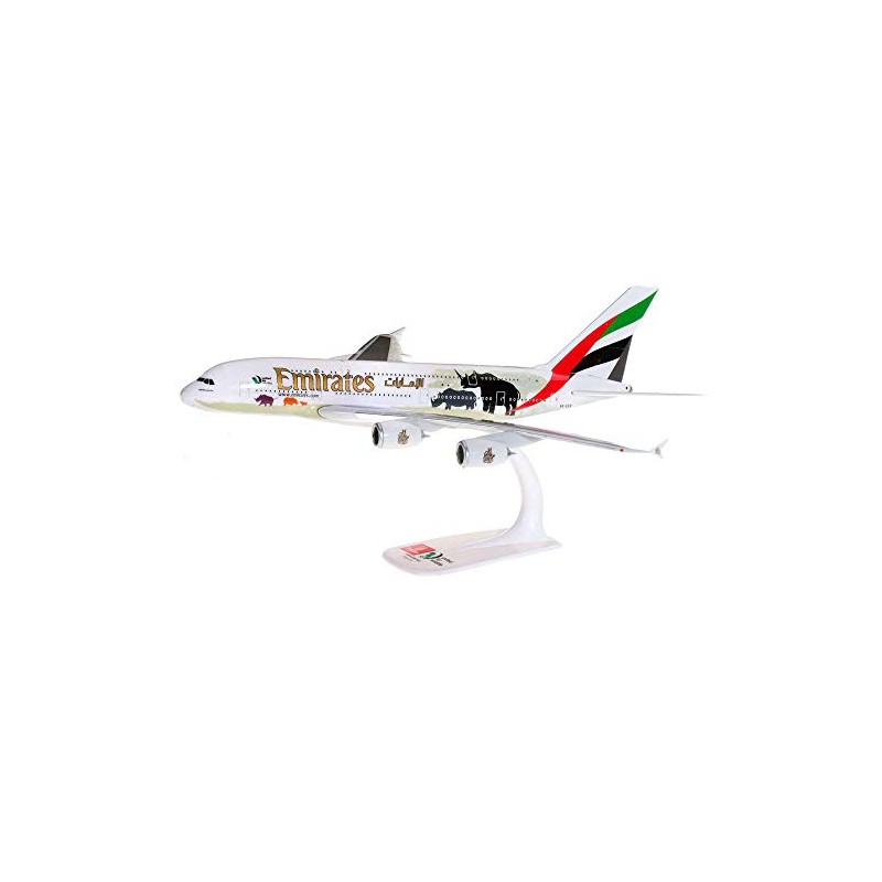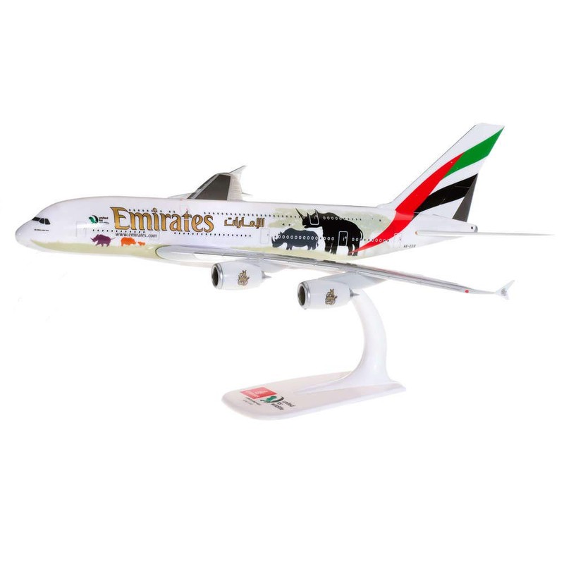 herpa 612180 – Airbus A380, Emirates „United for Wildlife“, Wings, Modell Flugzeug mit Standfuß, Flieger, Modellbau, Miniaturmodelle, Sammlerstück, Kunststoff, Snap Fit - Maßstab 1:250