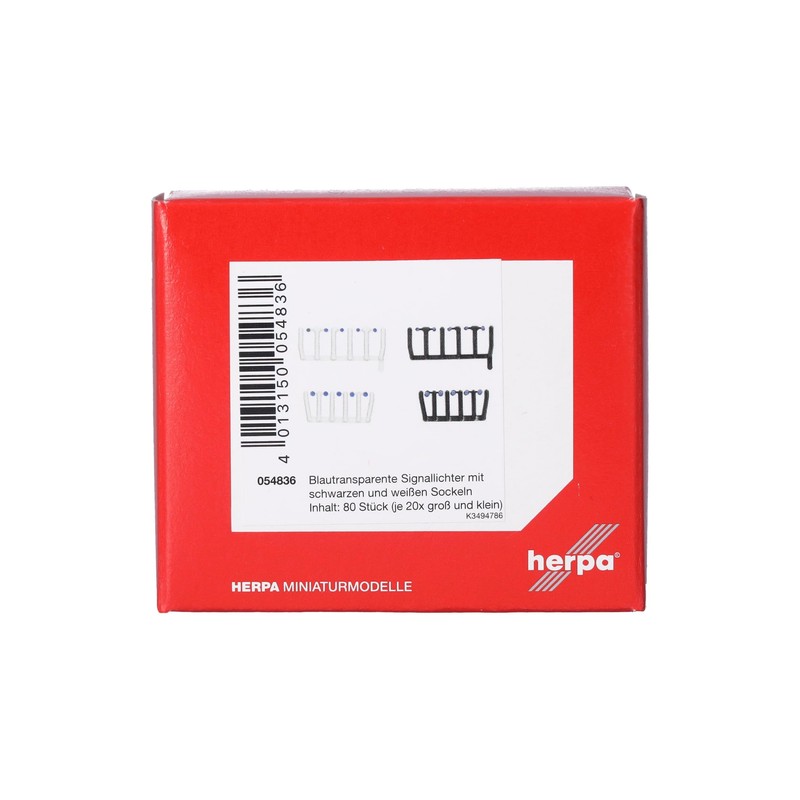 Herpa Accessories 80 Signal Lights Blue Transparent with Black and White Sockets, 20x Large and Small in Scale 1:87, Miniature Model, Plastic