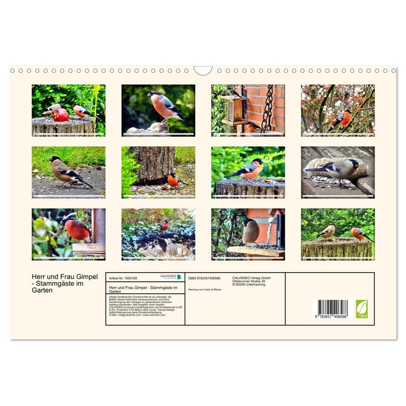 Herr und Frau Gimpel - Stammgäste im Garten (Wandkalender 2026 DIN A3 quer), CALVENDO Monatskalender