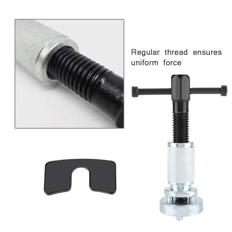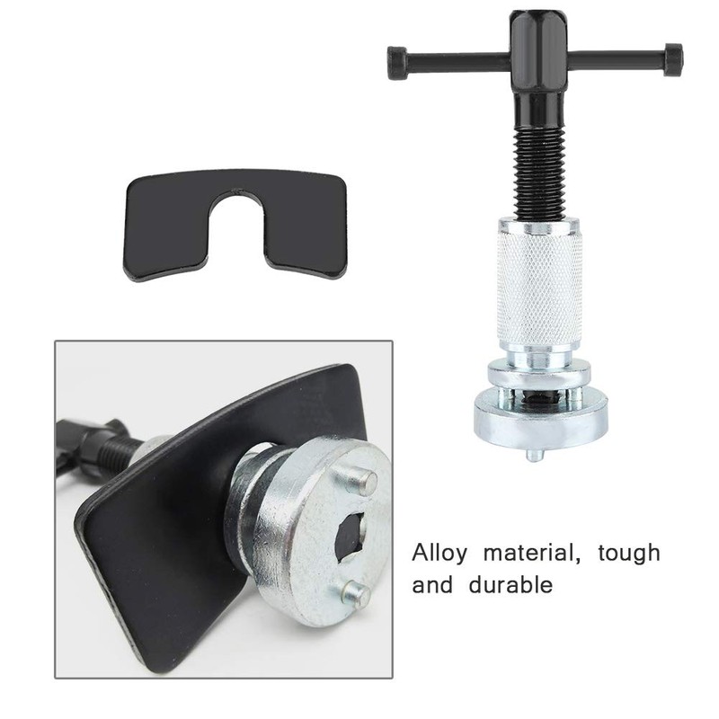 - Herramienta de pistón de freno de disco automotriz: esta herramienta es adecuada para la mayoría de las pinzas de freno de disco para vehículos diestros y es adecuada para todo tipo de bombas de freno reguladas por presión de pistón de freno. Se usa ampliamente sin preocuparse por la falta de coincidencia entre la herramienta y el modelo de automóvil, lo que la hace inutilizable.