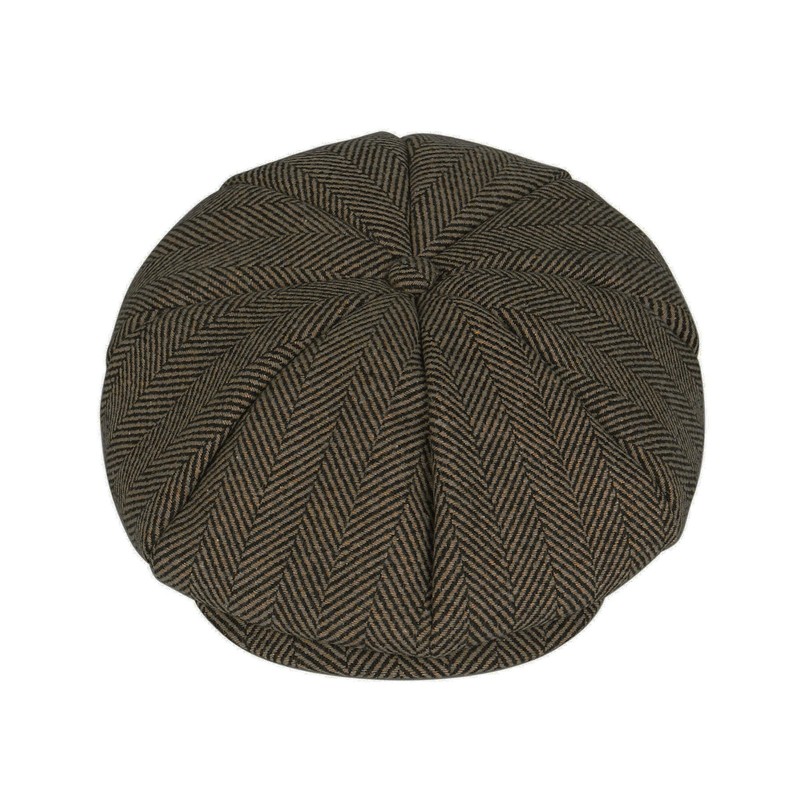 Herringbone Newsboy Cap 8 Panel Baker Boy Tweed Flat Cap Peaky 1920s Gatsby Hat for Men (Brown)
