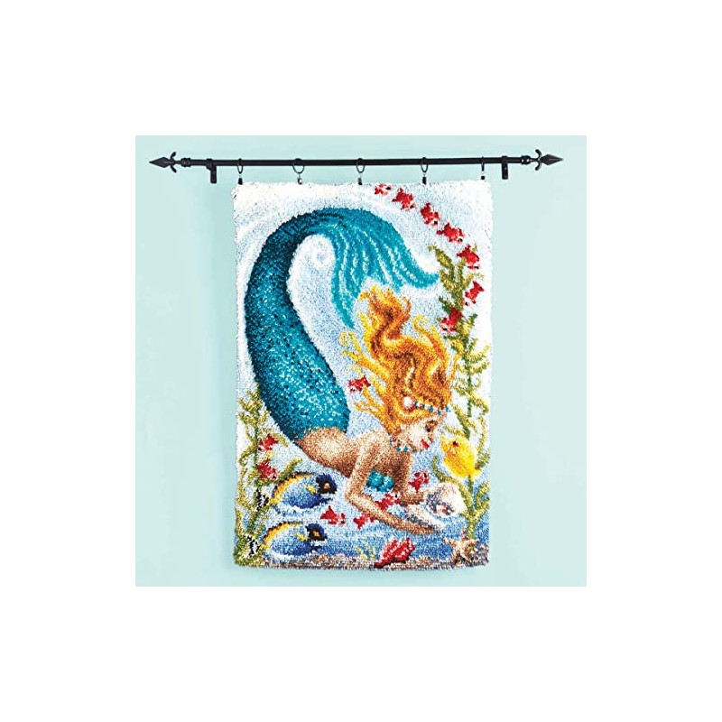 - This highly detailed latch hook design features a beautiful mermaid swimming down to the ocean floor and finding treasure within an oyster