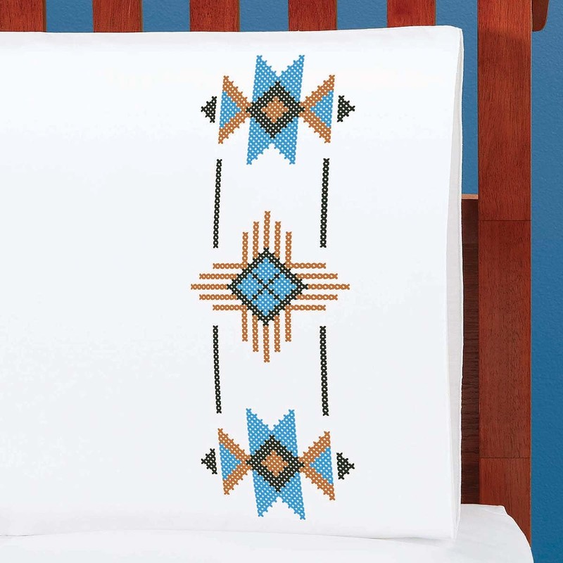 Herrschners Southwest Art Pillowcase Pair Stamped Cross-Stitch