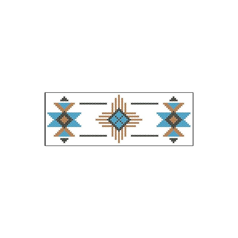 - These cross-stitch pillowcases feature Southwestern-inspired patterns with bold geometric shapes in shades of turquoise and copper