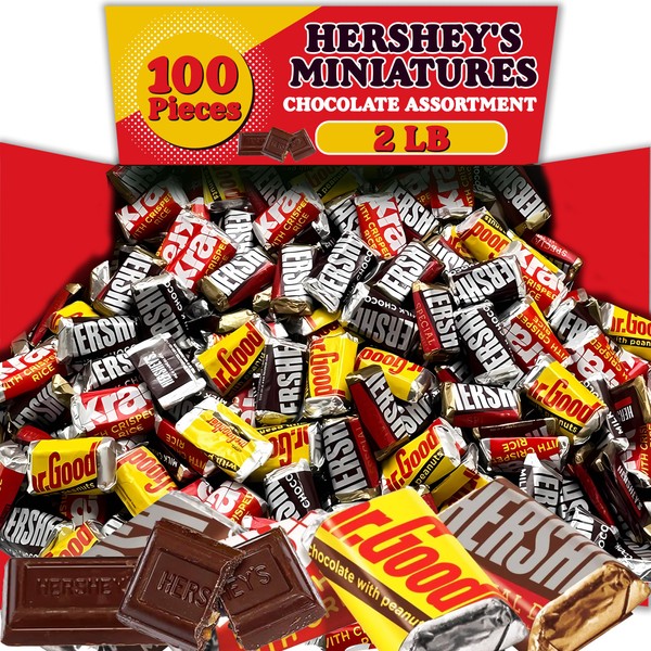 Hershey Miniatures Chocolate Assortment, 2 Lbs, Bulk Individually Wrapped Miniatures Chocolate Candy, Milk Chocolate Candy Variety Pack, Includes Milk Chocolate, Special Dark, Appx 100 Pieces