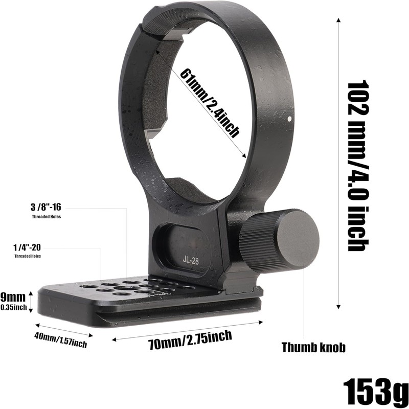 - Reserves multiple 1/4‘-20 & 3/8’-16 threaded screw holes on the bottom for direct attachment of lenses to tripod.