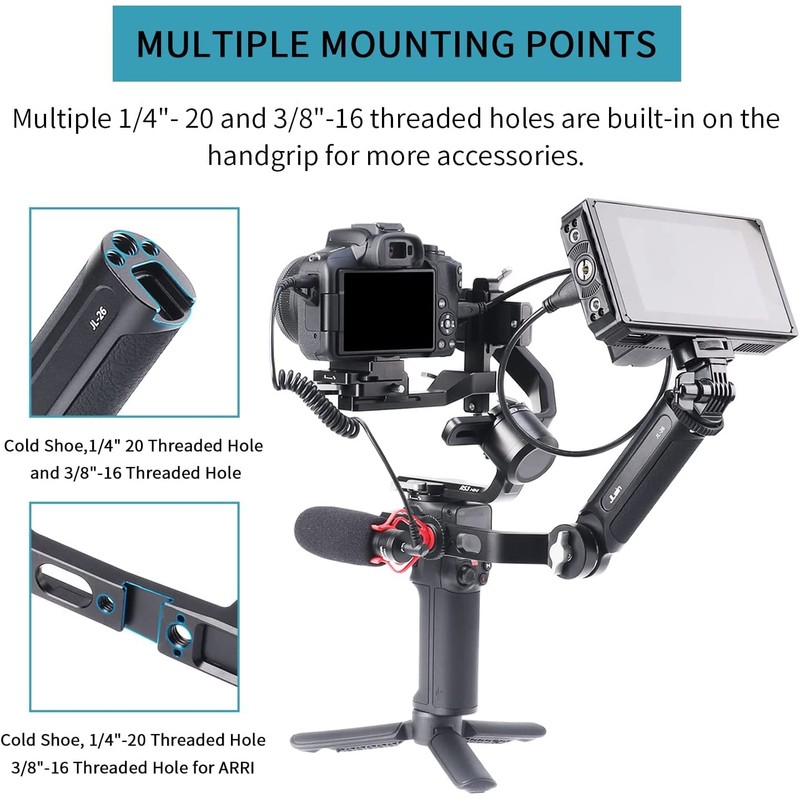 Specially designed for DJI RS 2 RSC 2 RS 3 RS 3 Pro hand stabilizer. Allows you to hold the Ronin Gimbal to effortlessly capture video from low angles, while providing different attachment points for accessories