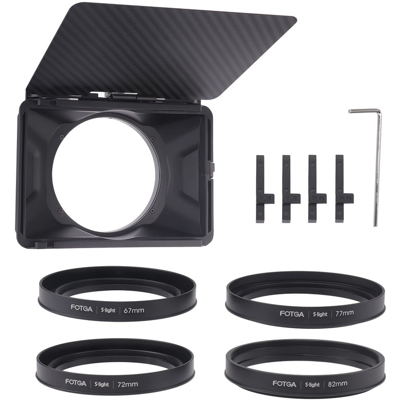 How to install? Attach the ring adapter in the front of your lens,then snap the matte box onto the ring adapter.