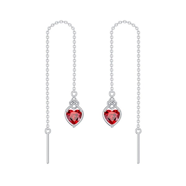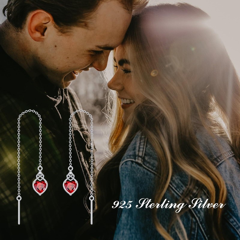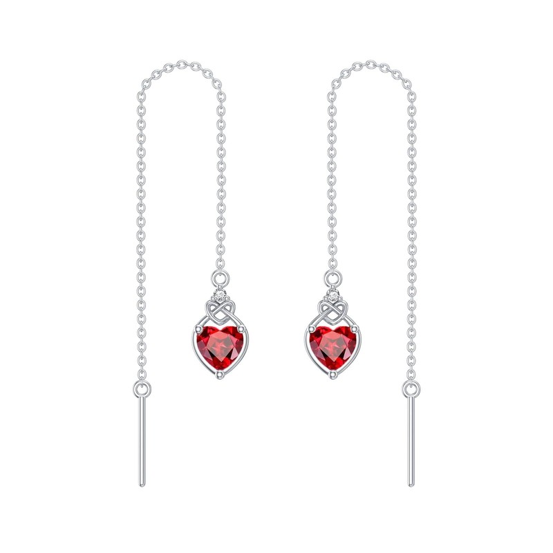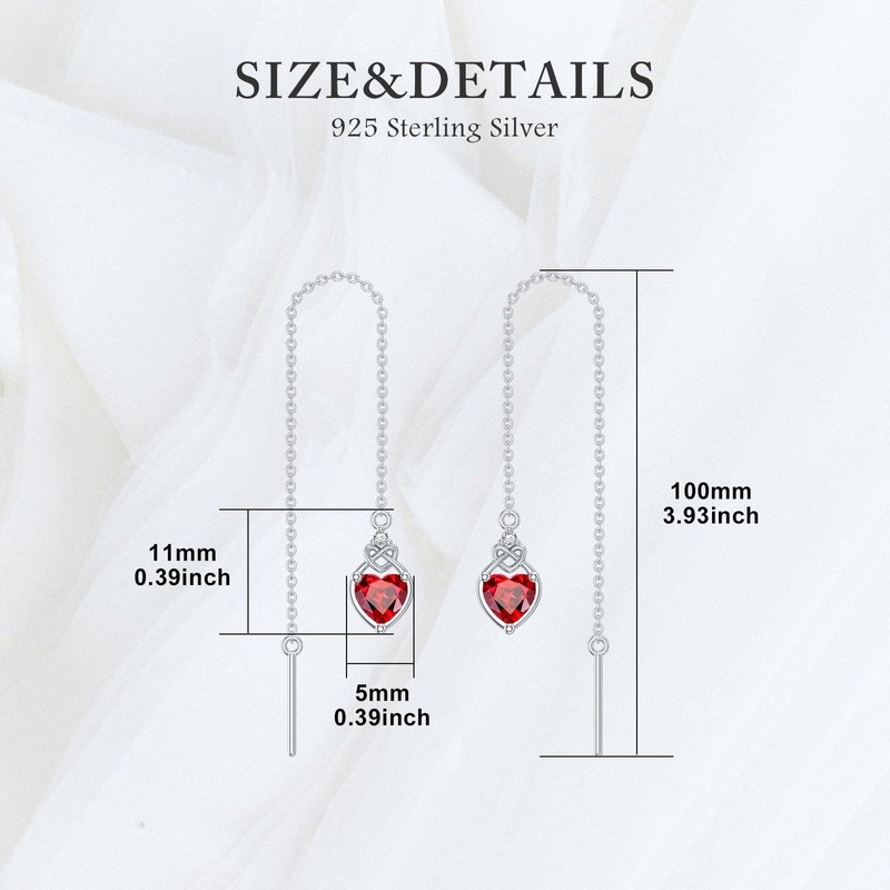 Herz keltischen Kont Granat rot Threader Ohrringe 925 Sterling Silber Januar Birthstone lange Kette Drop Ohr Linie Geburtstag Schmuck Geschenke für Frauen