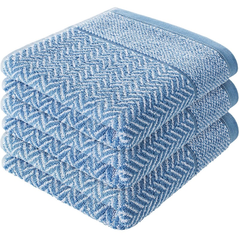 herzbach home Hand Towel / Bath Towel Set 100% Cotton Patterned (Blue/White, 3 Hand Towels 50 x 100 cm)