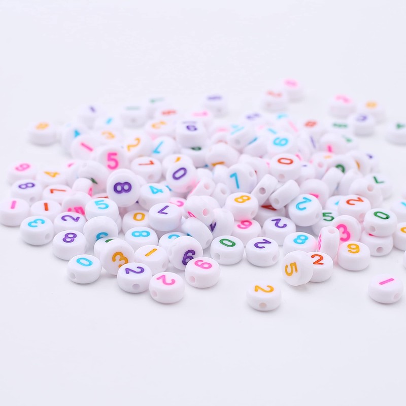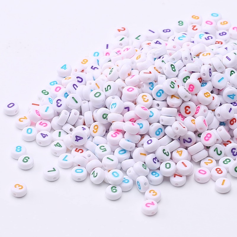 - Numbe beads material: acrylic resin, diameter: 7.0 mm; thickness: 4.0 mm; threading hole: approx. 1.5 mm