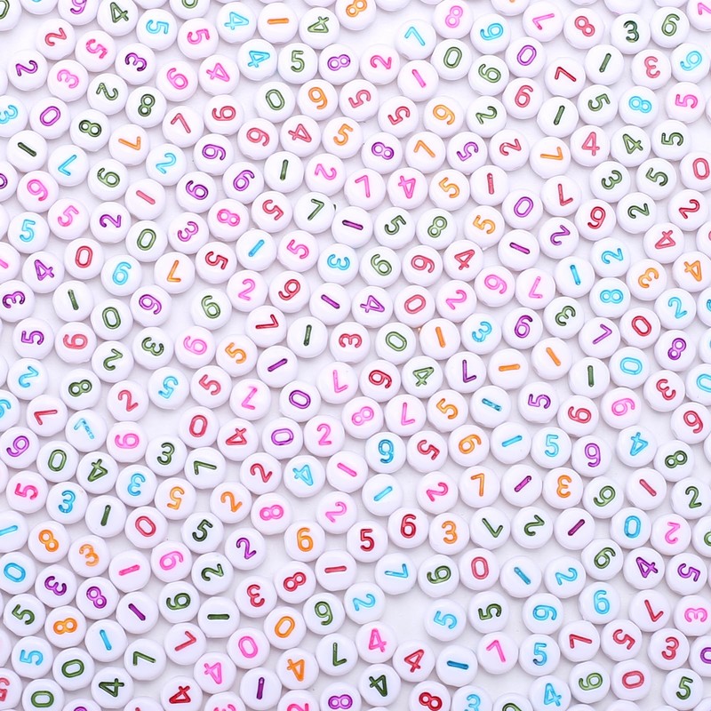 HERZWILD 800pcs Number Bracelet Beads for Bracelet Making Acrylic Number Beads Round 0 to 9 Bead for Jewelry Making (Colour-Number)