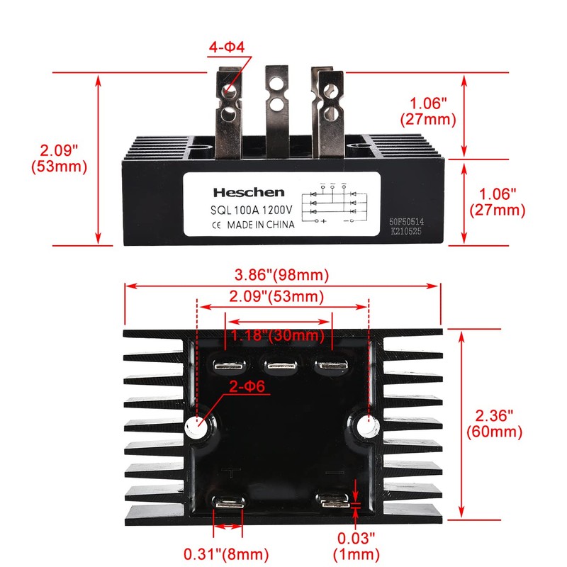 Heschen 3 Phase Bridge Rectifier SQL-100A Diode Module 100A 5 Terminals