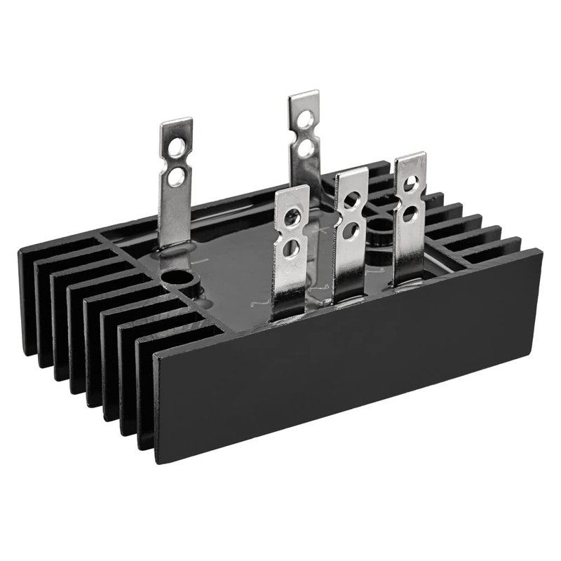 The bridge rectifier converts the three-phase current input into DC with heat sink design.