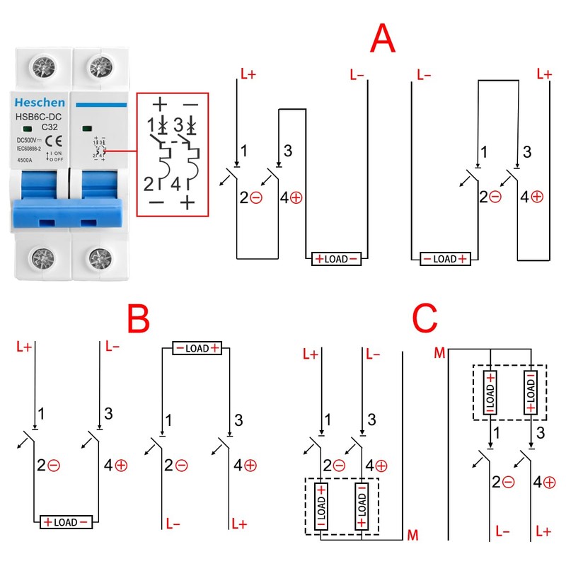 Heschen DC Miniature Circuit Breaker, HSB6C-DC, 2 Poles, DC500V 80A, Photovoltaic Circuit Breaker, for Solar PV System Solar Panels Grid System, 35mm DIN Rail Mounting
