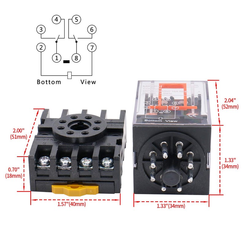 Heschen Gereral Purpose Relay MK2P-I AC 220V Coil DPDT 8 Pin with Plug-in Terminal Socket PYF83A