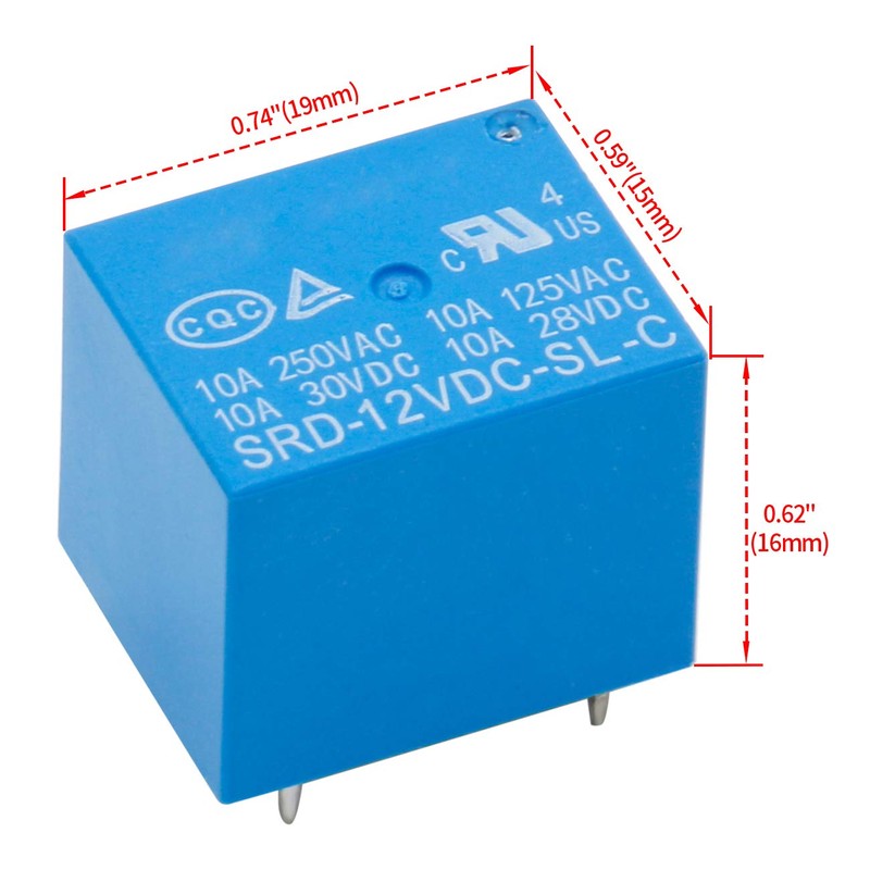 Heschen PCB Relay, SRD-12VDC-SL-C, DC 12V Coil, SPDT, 10A 250VAC, 5 Pin Terminal, 2 Pack