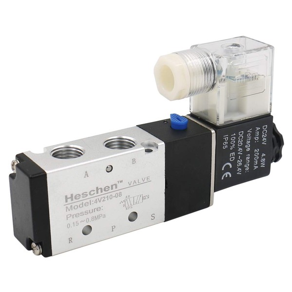 Heschen Pneumatic Solenoid Valve 4V210-08 PT1/4 24V DC 4.8W 5-Way 2 Position Single Coil