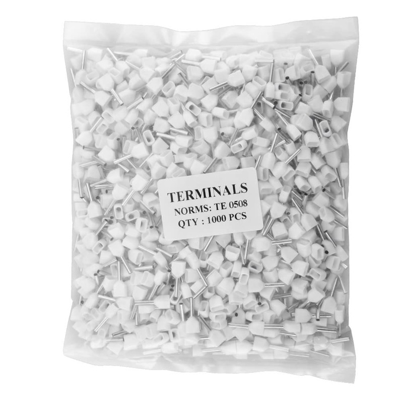 Heschen Twin Wire-end Ferrules, TE0508, AWG 22 * 2/0.5 mm²*2, crimp connectors Cable Connector, Twin Tube Pre-Insulated Terminal, Length 8 mm, White, Pack of 1000