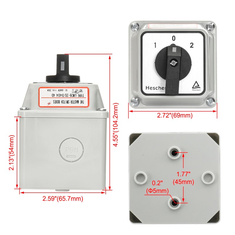 Heschen Universal Locking Cam Selector Switch, LW28-20/D404.4D, 660V 20A, ON-OFF-ON 3 Positions 16 Terminals, with Main Switch Outer Box (Standard Box)