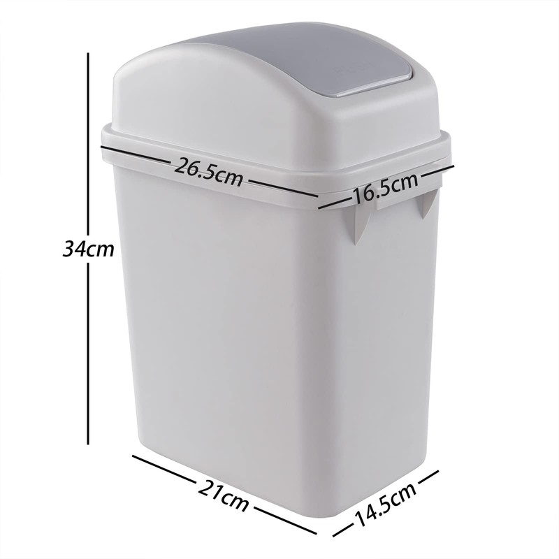 Hespama 7 L Small Plastic Garbage Trash Can with Swing Lid for Bedroom Bathroom Office, Grey, F