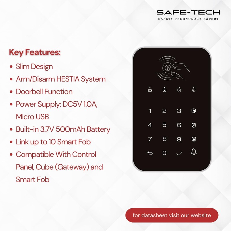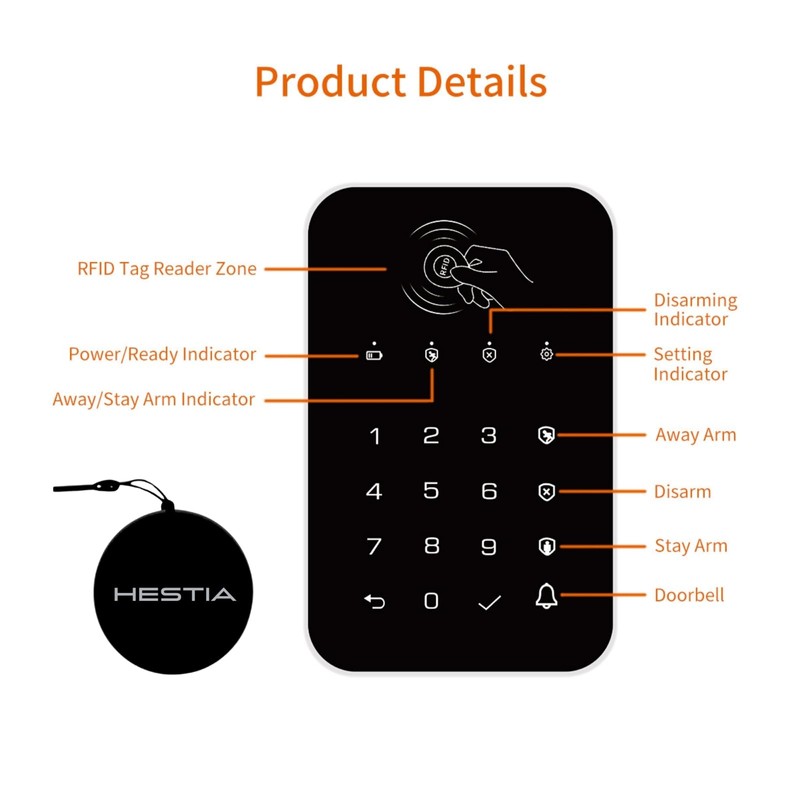 HESTIA Wireless Keypad and RFID Smart Fobs for SAFE-TECH Smart Home Security System, HS-01-WKP