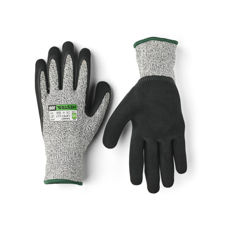Hestra Job Sandy Latex Cut Glove - 5-Finger Glove for Cut Protection and Demolition Work - Black - 8