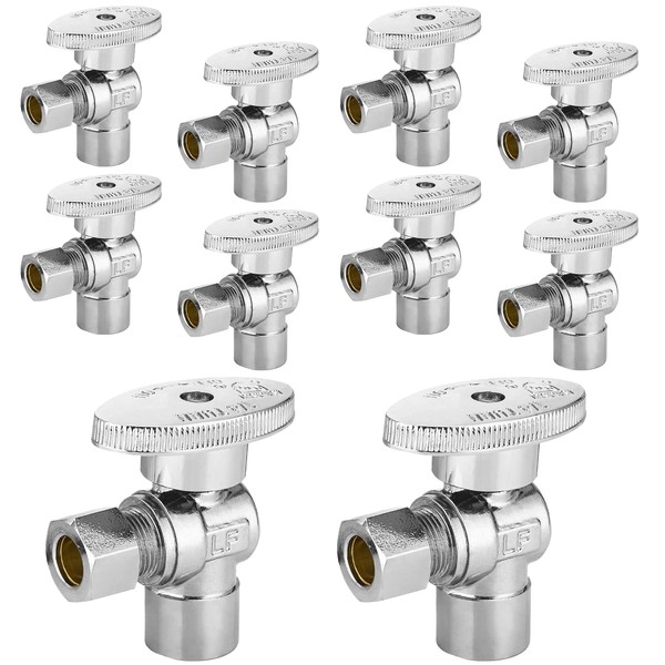 - PACKAGE INCLUDE-10 pack lead-free brass 1/2 inch SWEAT x 3/8 inch OD compression angle valves.