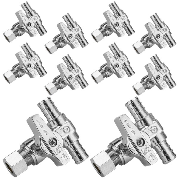 - PACKAGE INCLUDE-10 pack lead-free brass 1/2" PEX x 1/2" PEX x 3/8" OD PEX tee stop valve (ASTM F1807).