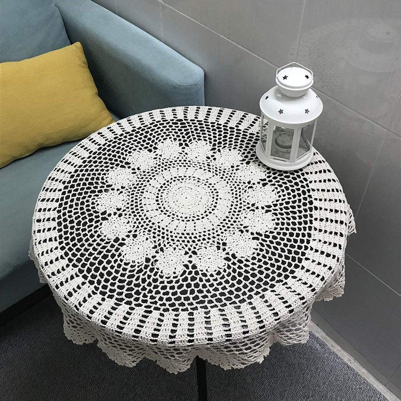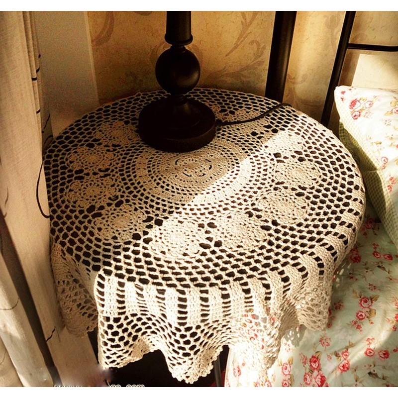 Hetao 100% Cotton Handmade Crochet Round Tablecloth Doilies Lace Table Covers,Beige, 35 Inch