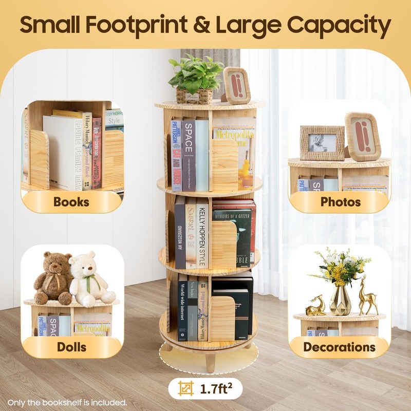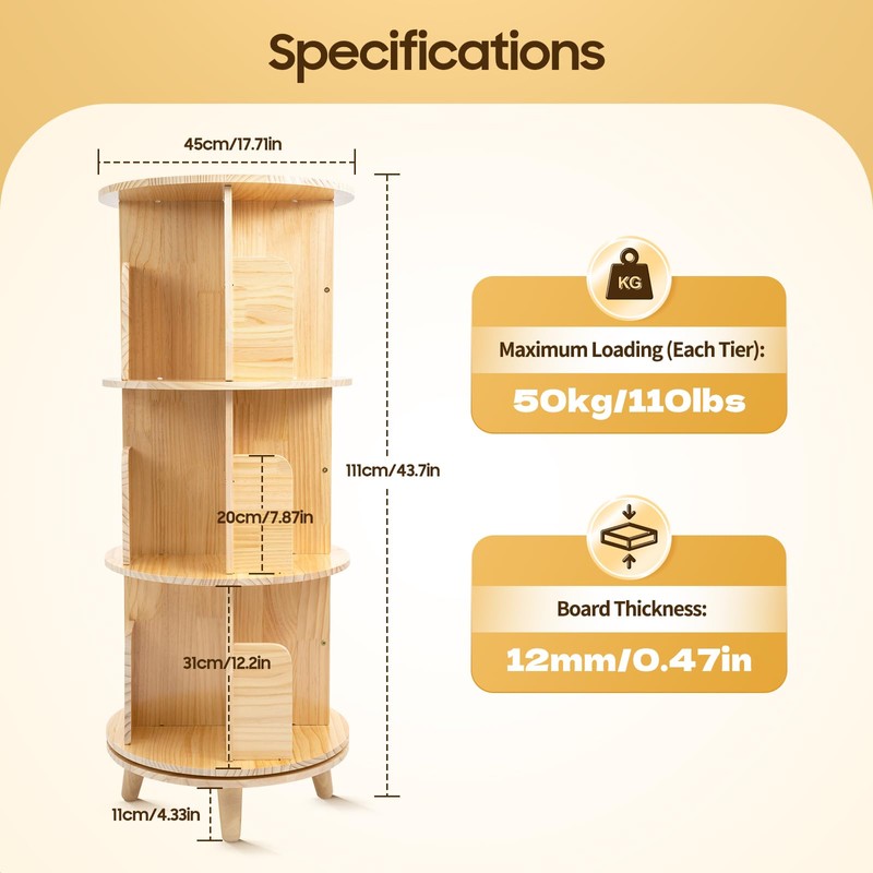 - [Quality Material] The rotating bookshelf is made of high-quality New Zealand pine wood, which is strong, durable, and hard-wearing to guarantee a long service life.