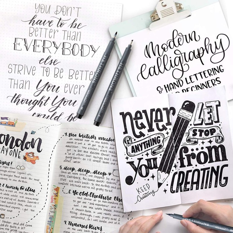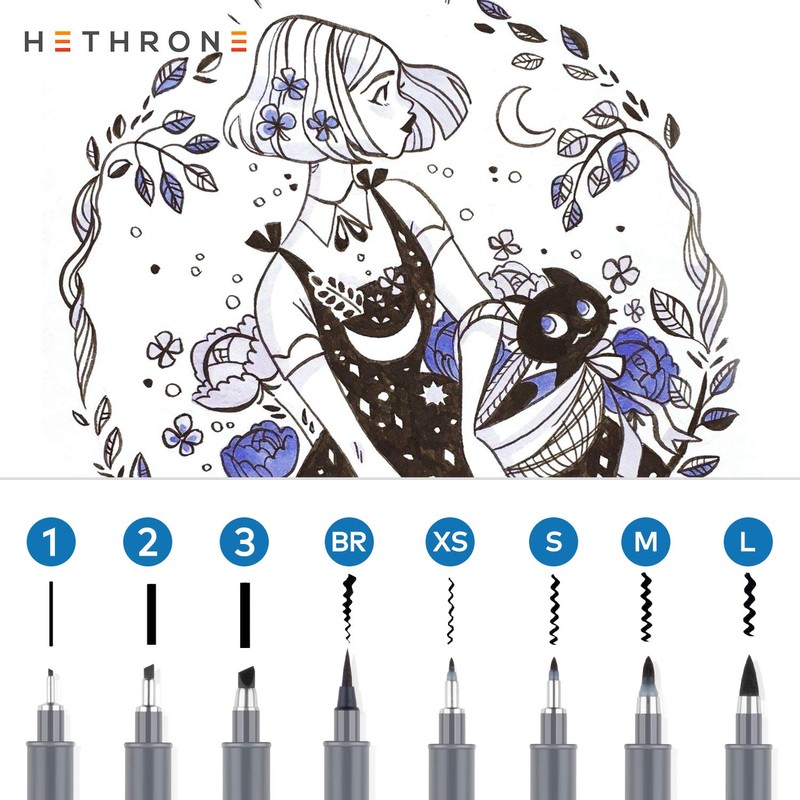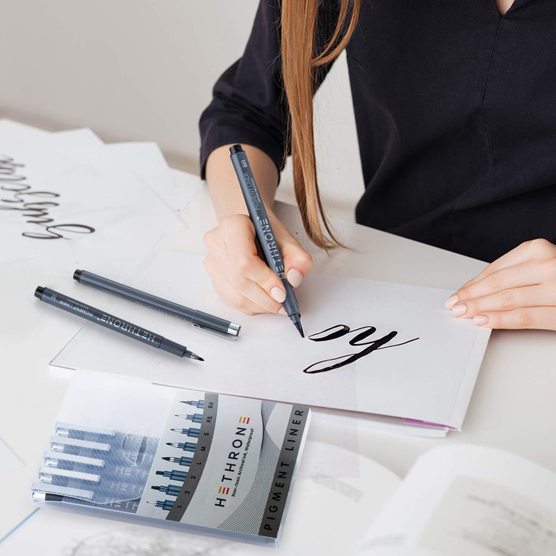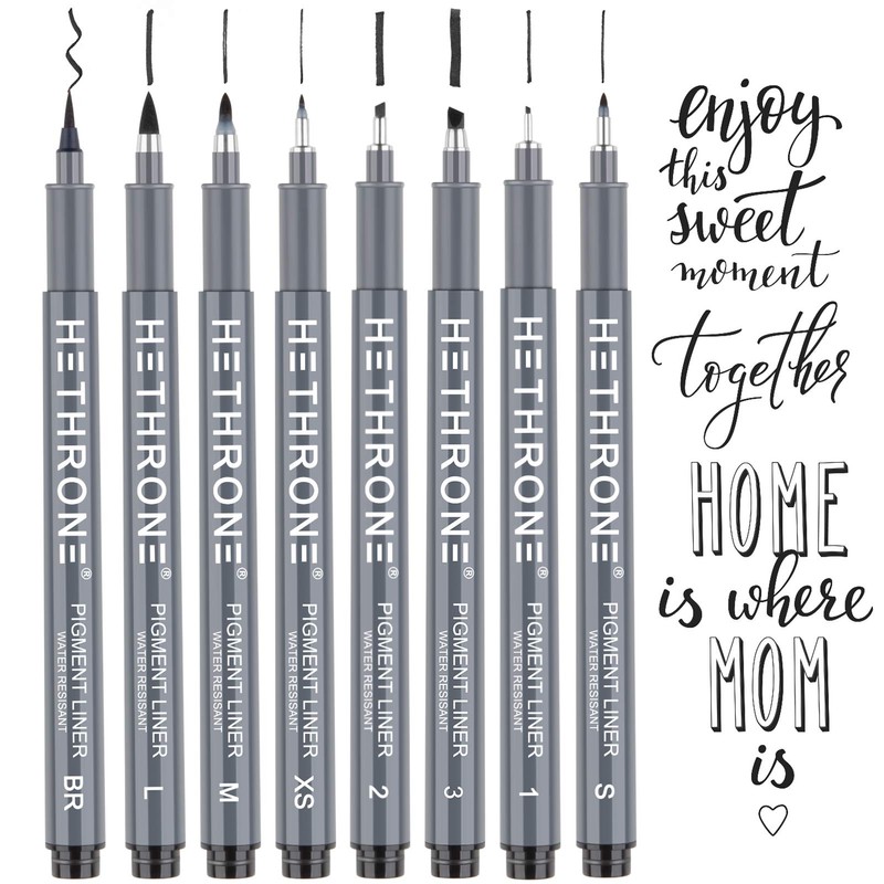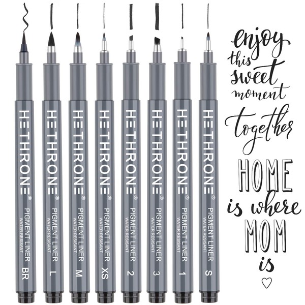 Hethrone Hethrone Kalligraphie Stifte, Handlettering Stifte und Schwarz Kalligraphie Set für Anfänger Schreiben, Unterschrift, Illustration Design und Zeichnen (8 Größe)