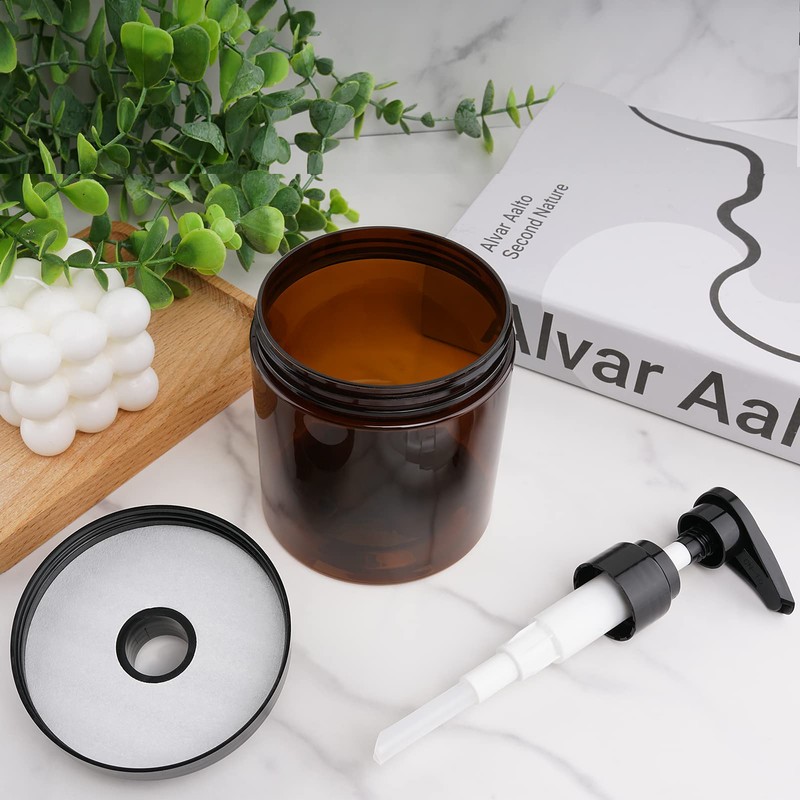 Hethyo Hethyo Pump Bottle Dispenser 3 Pcs 600ml/20oz Refillable Plastic Pump Bottles Wide Mouth Jar Style BPA Free Empty Pump Bottles Bathroom Shower Containers for Lotion Shampoo Conditioner (Brown)