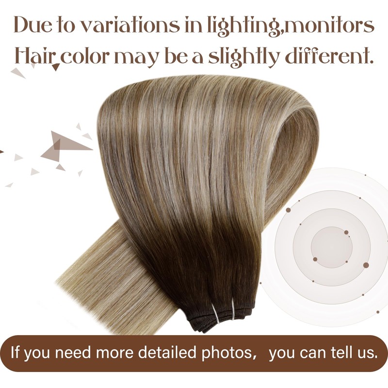 Hetto Weft Hair Extensions Real Human Hair Brown Root Ombre to Light Brown with Medium Blonde Sew in Extensions Double Weft 14 Inch 80g/Pack #3/8/22