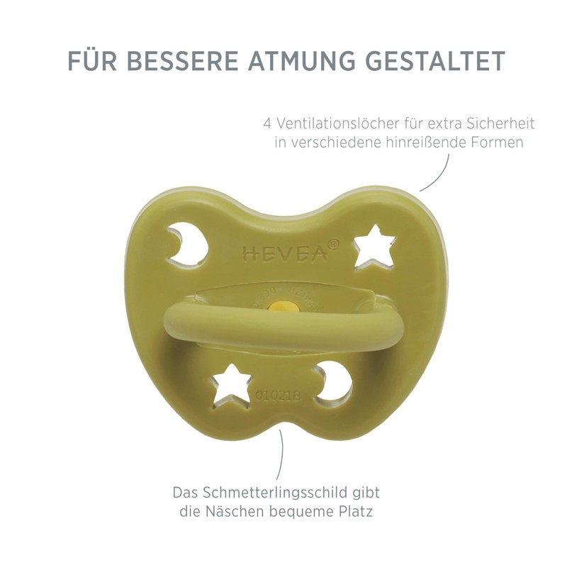 - Trusted by parents to be natural and safe for newborns – the HEVEA dummies made of 100% natural rubber are vegetable and vegan certified and therefore do not contain plastic, silicone, BPA, PVC and phthalates. On top of that, our colour pigments are also natural.