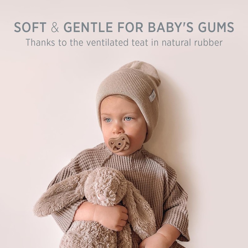 - DANISH DESIGNED - Not only do our pacifiers look amazing - with beautiful color options and four adorably-shaped ventilation holes (surpassing safety standards), the teat’s ventilation hole makes the teat super soft and malleable for baby, while also being durable to resist baby bites