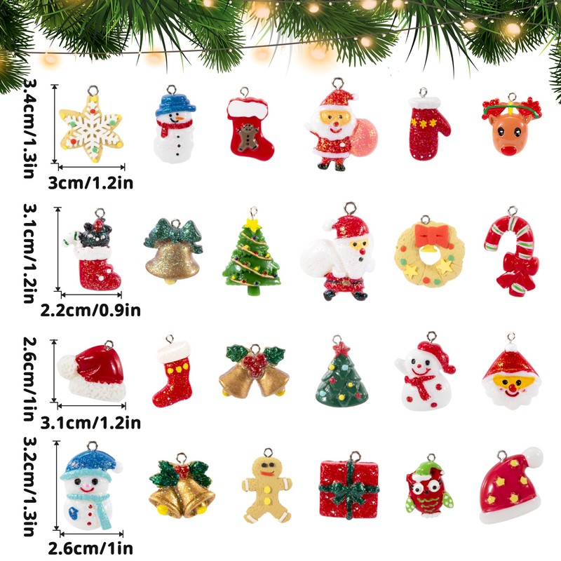 - Package includes: contains 24 Christmas pendants with Santa Claus, bells, snowman, reindeer, mini Christmas tree, sweets, Christmas wreaths and other patterns to meet your decorative needs.