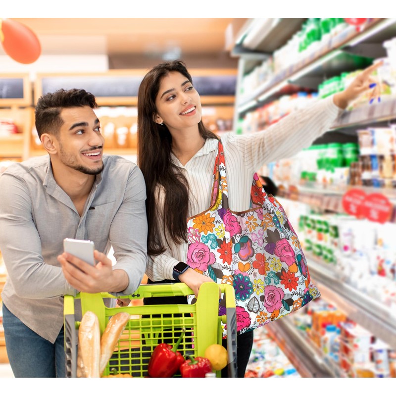 - FOLDABLE SHOPPING BAG Our extra large reusable shopping bag is perfect to take with you when shopping, environmentally friendly and meet your daily needs.