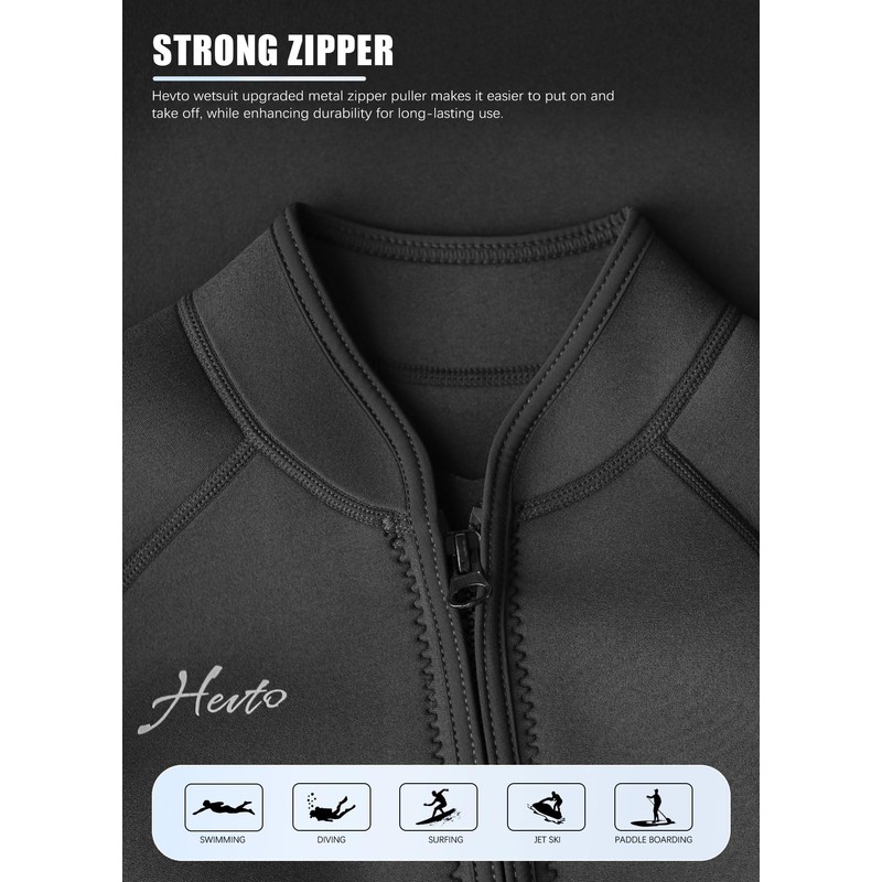 - Strong Zipper: Designed with a front zipper, Hevto men wetsuit allows for a secure fit and easy on/off. The rust-resistant zipper slider enhances durability, while the smooth design ensures comfort, perfect for surfing, diving, or paddleboarding.